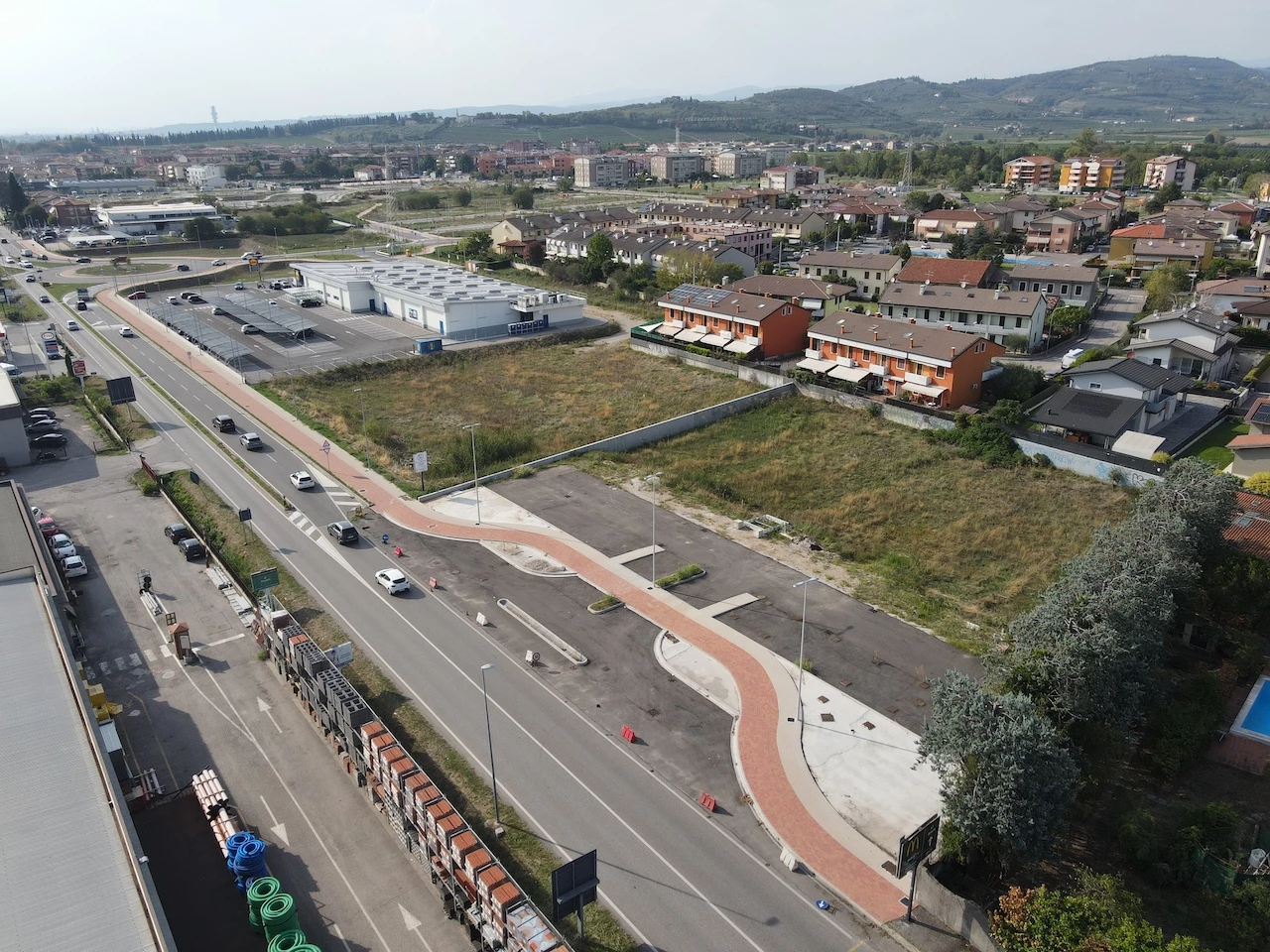 Lotto urbanizzato di 2.662mq e volume massimo realizzabile 2.543,86mc altezza massima 7,00m oltre a parcheggio di proprietà con servitù ad uso pubblico di 653mq. Terreno classificato dal vigente strumento urbanistico quale zona "ZTO C2A" residenziale/commerciale/direzionale.