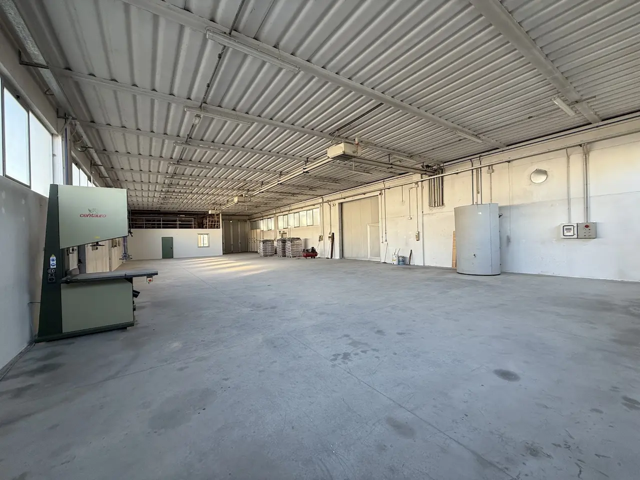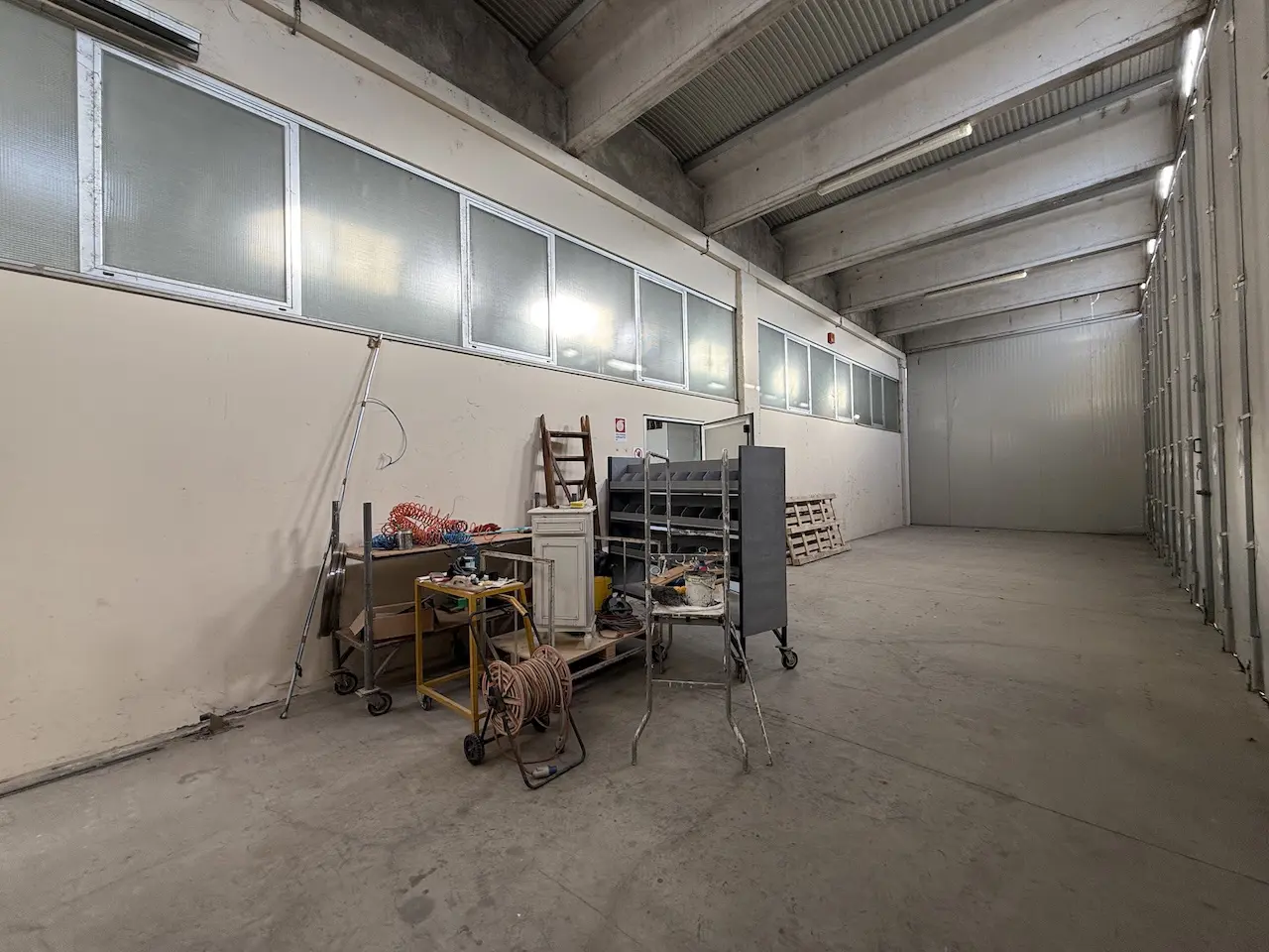 Edificato su lotto indipendente di 2.336mq, capannone riscaldato a campata unica di 482mq altezza 4,90m servito da n.2 portoni a raso oltre a prolungamento mediante tettoia chiusa di ulteriori 90mq medesima altezza. Ufficio/bagni di 40mq con soletta portante; Immobile con edificabilità residua per indicativamente raddoppiarlo.