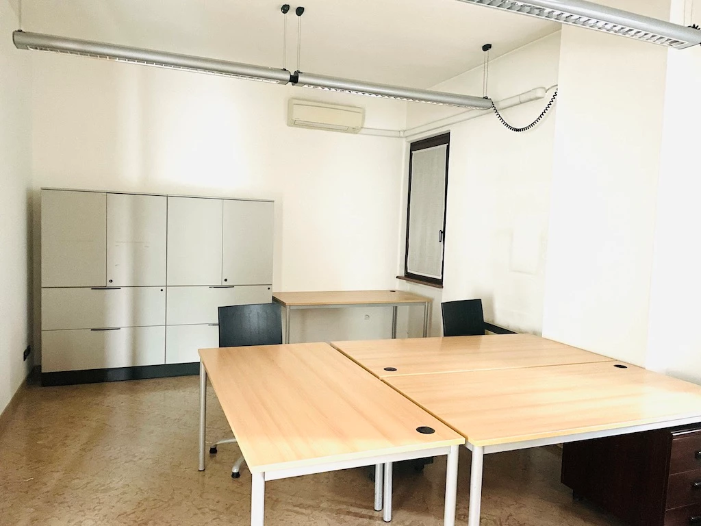 Immobile ad uso ufficio di totali 140mq calpestatili, dotato di una zona ingresso con uffici, 2 uffici indipendenti, servizi igienici. Riscaldato e Raffrescato, utenze autonome e disponibilità di un parcheggio ad uso privato ed esclusivo di circa 130mq. Adatto a Studi Medici-Professionali.