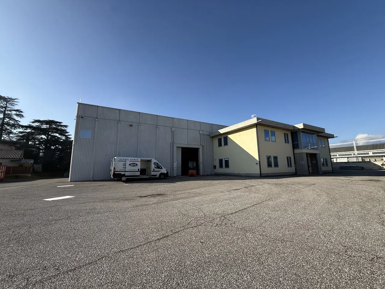 Edificato su lotto indipendente di 7.695mq, capannone riscaldato di 2.492mq altezza per la maggioranza 9,50m con predisposizione al carroponte di portata 10 Ton, n.2 baie di carico, oltre a zona uffici di 435mq a richiesta parzialmente convertibile in appartamento trilocale del custode.