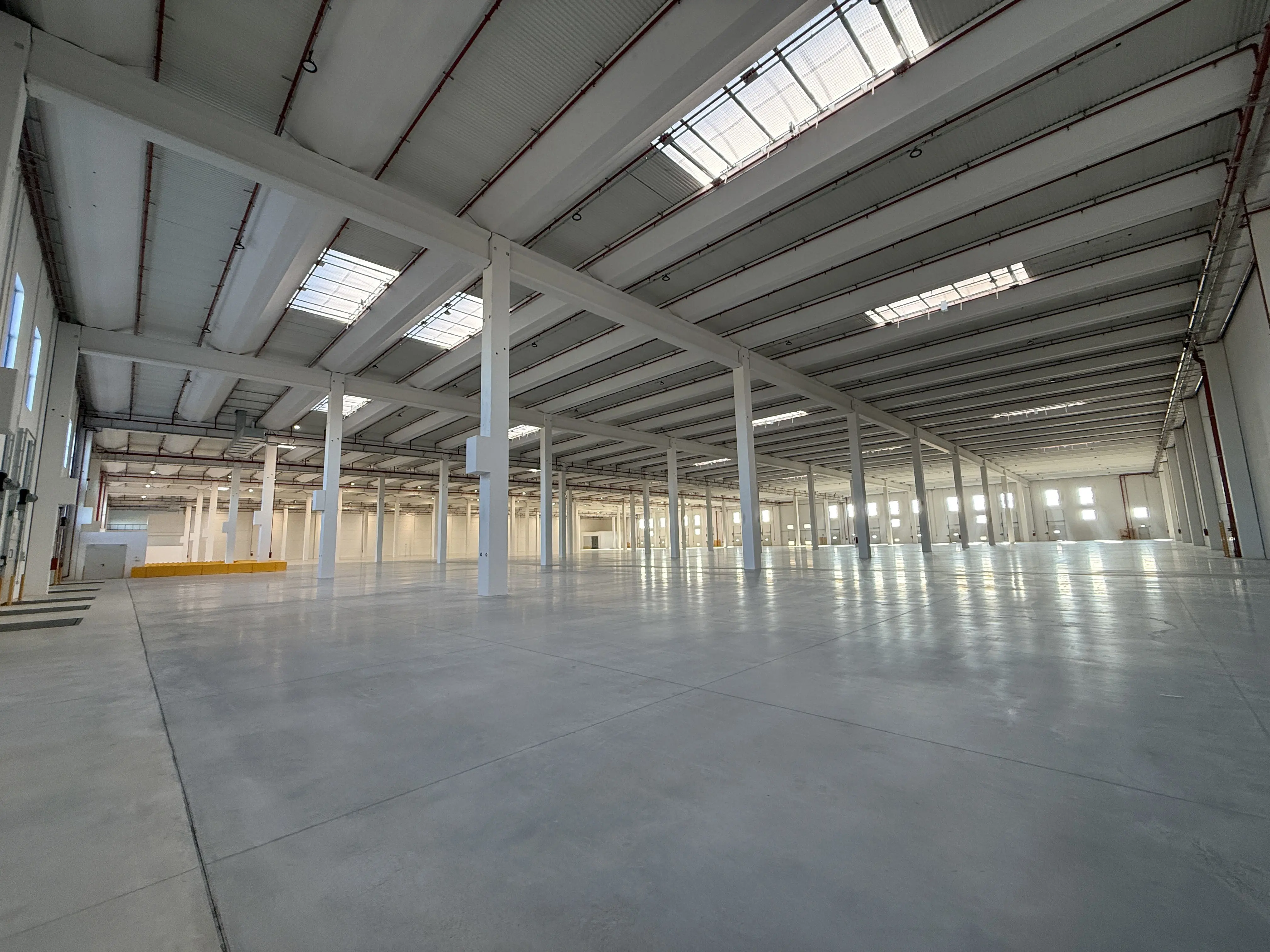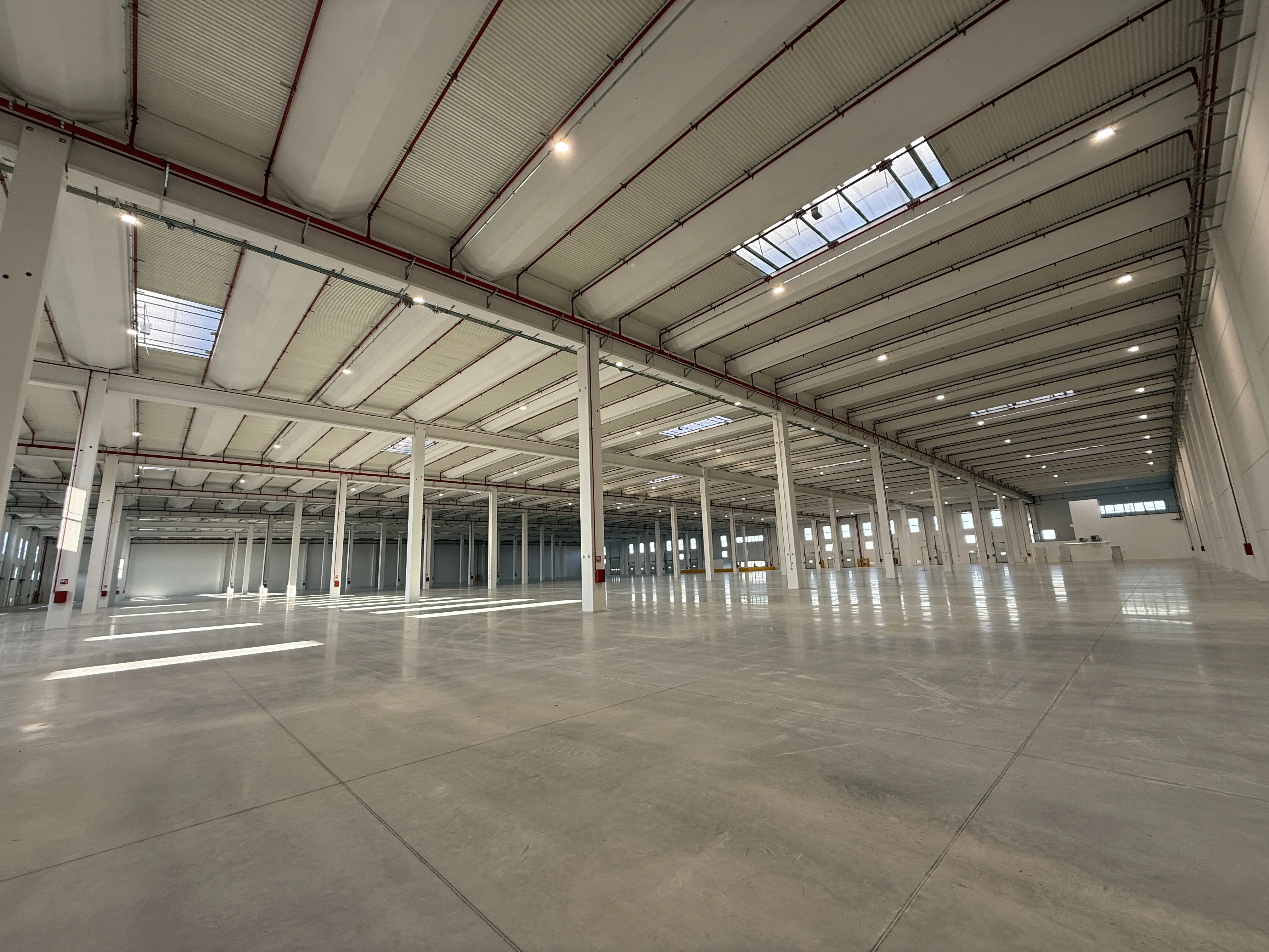 Capannone di 64.319mq di magazzino, altezza 12,20m, oltre 2442mq zona uffici su due livelli, 1184mq ricovero muletti, locali tecnici, via di esodo centrale e soppalco P1 di 7.369mq (portata 1.000kg/mq), illuminazione LED, impianto antincendio UNI45, idranti esterni UNI70 e Sprinkler NFPA/ESFR, 96 baie di carico e 6 portoni a raso. Consegna Q3-2026 - frazionabile