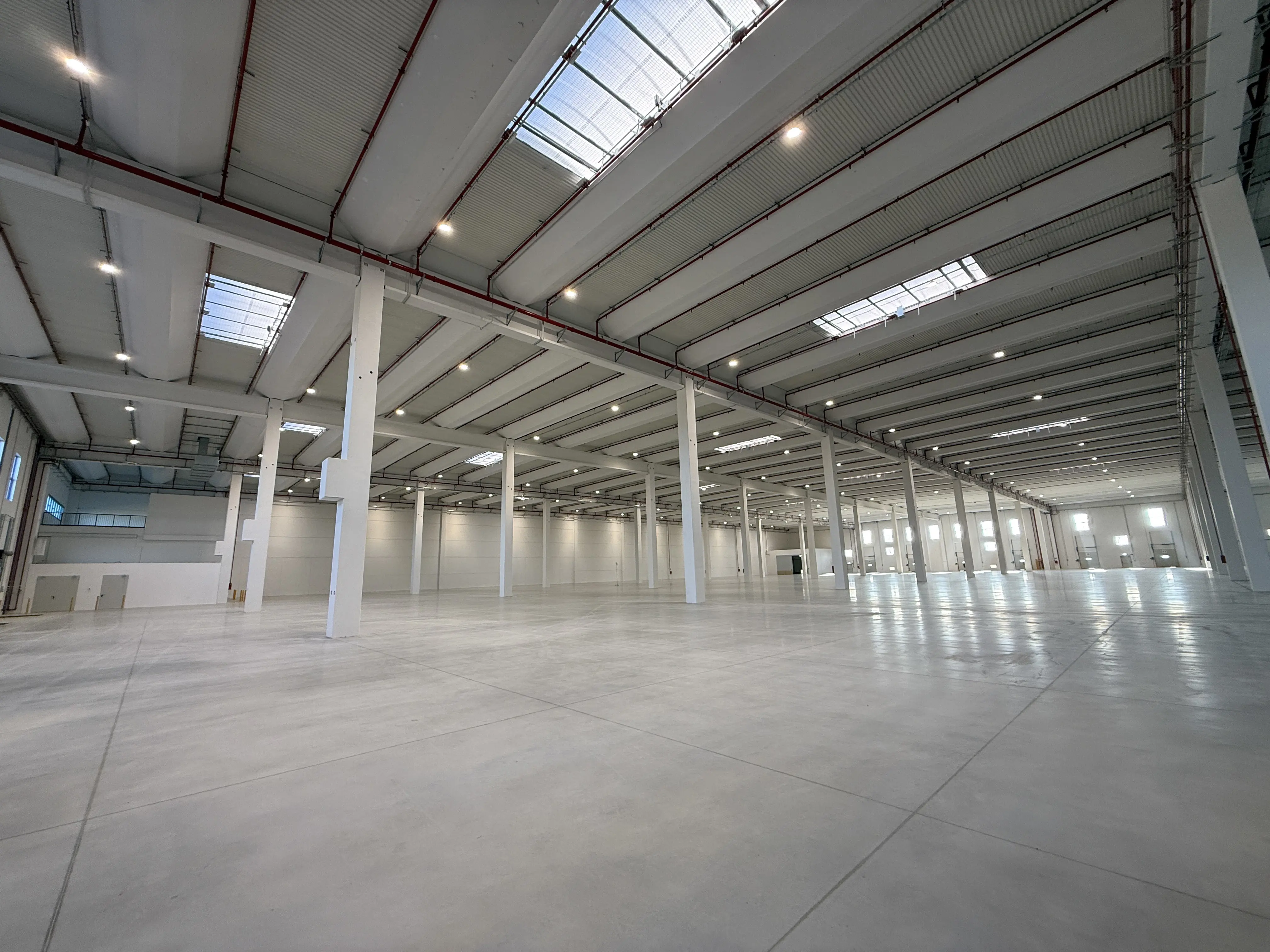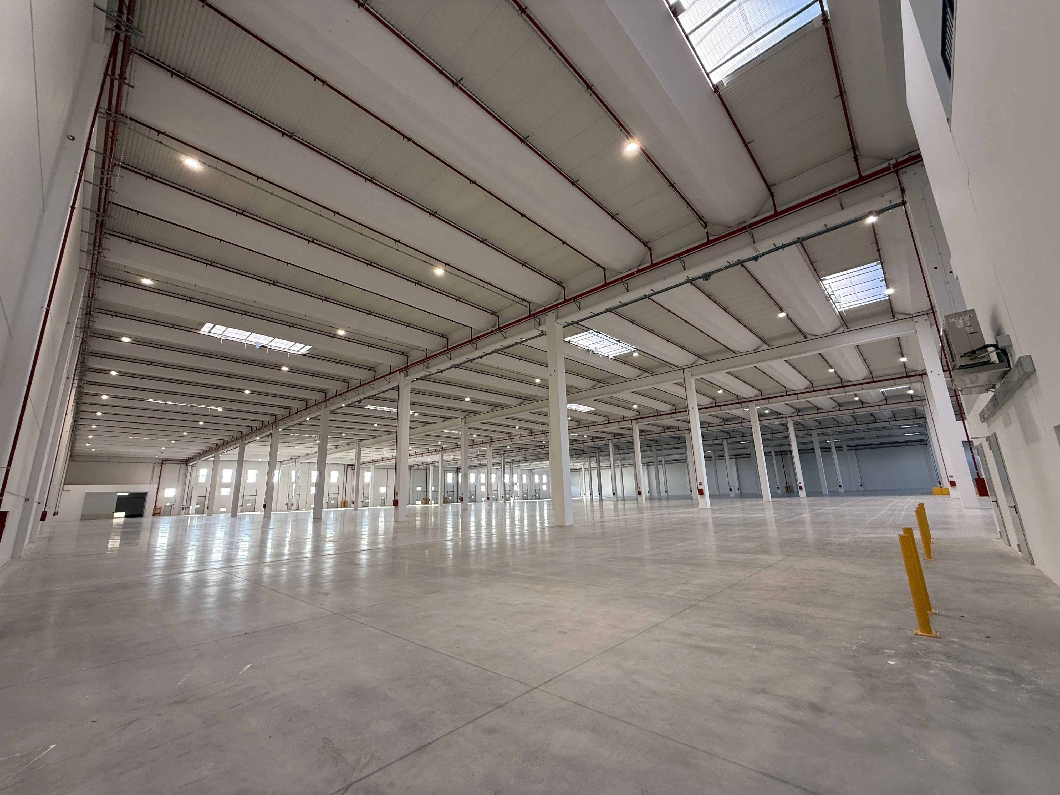 Capannone di 22.854mq di magazzino, altezza 12,20m, 806mq zona uffici su due livelli, 398mq ricovero muletti, locale tecnico e soppalco P1 di 2.393mq (portata 1.000kg/mq), illuminazione LED, impianto antincendio UNI45, idranti esterni UNI70 e Sprinkler NFPA/ESFR, 31 baie di carico e 2 portoni a raso. Consegna Q3-2026