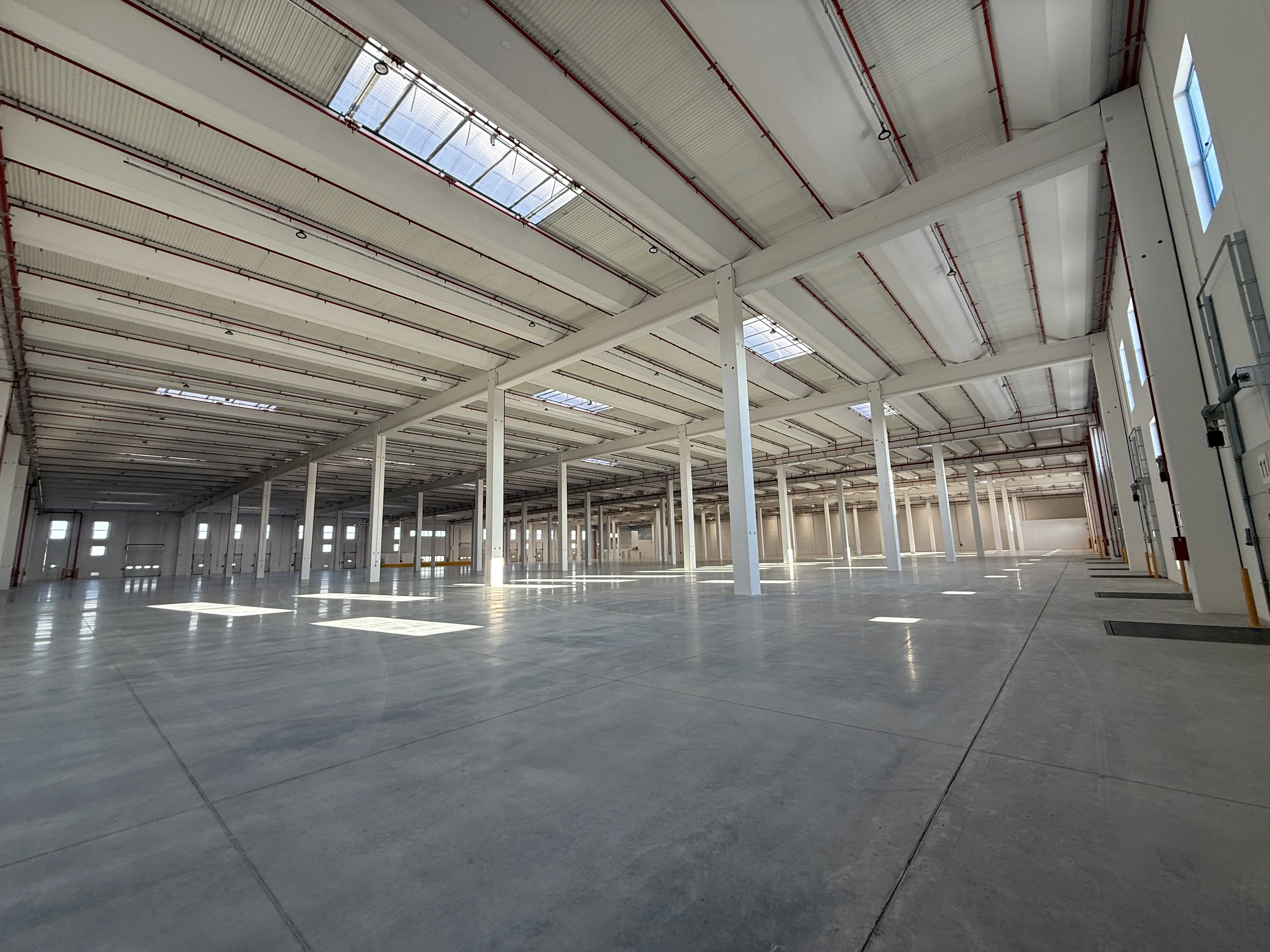 In costruzione capannone antisismico REI 120 - LEED GOLD di 52.742mq a magazzino oltre vano caricabatterie e 2.322mq di uffici e spogliatoi su due piani, in aggiunta soppalchi di 5.180mq, altezza 12,40m; illuminazione a LED, impianto antincendio con manichette UNI 45 interne, idranti esterni UNI 70 e Sprinkler NFPA/ESFR, 58 baie di carico, 6 portoni a raso, parcheggi auto/tir. CONSEGNA Q3-26