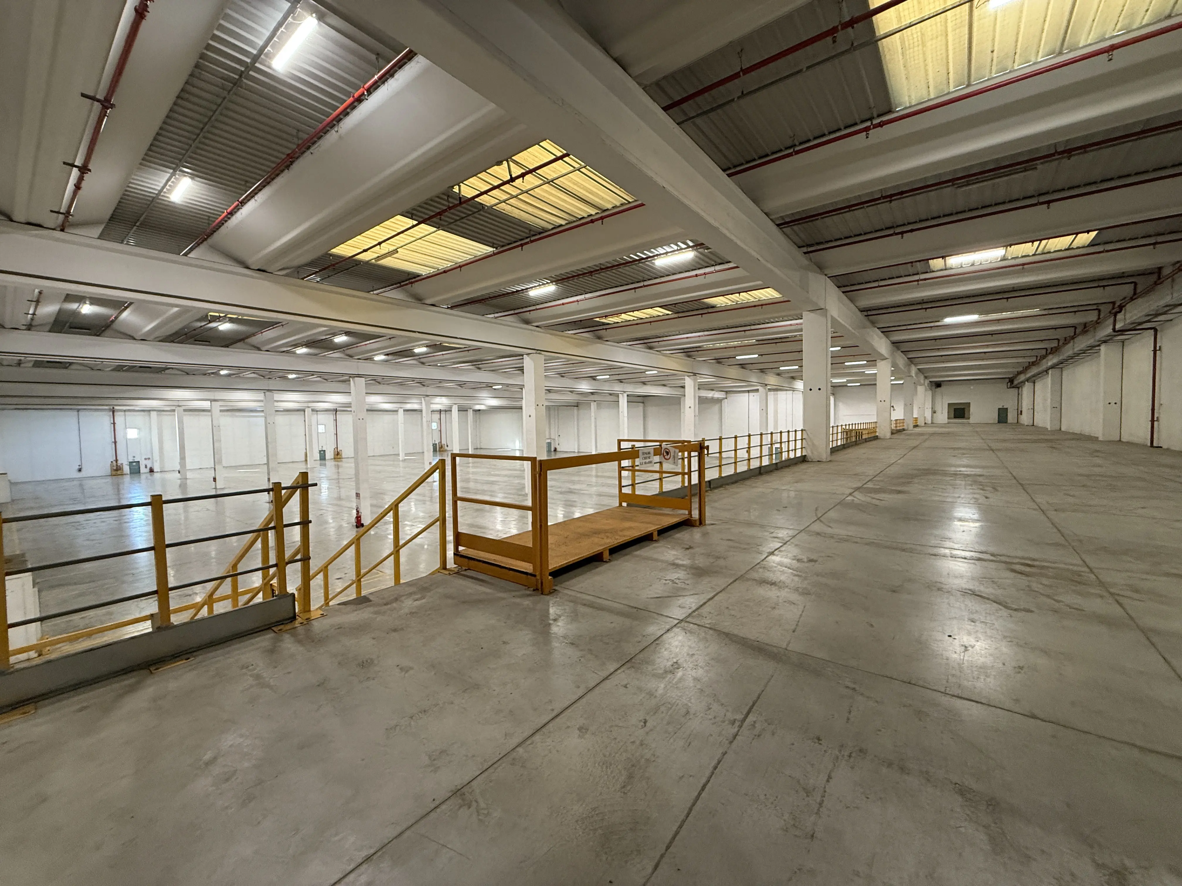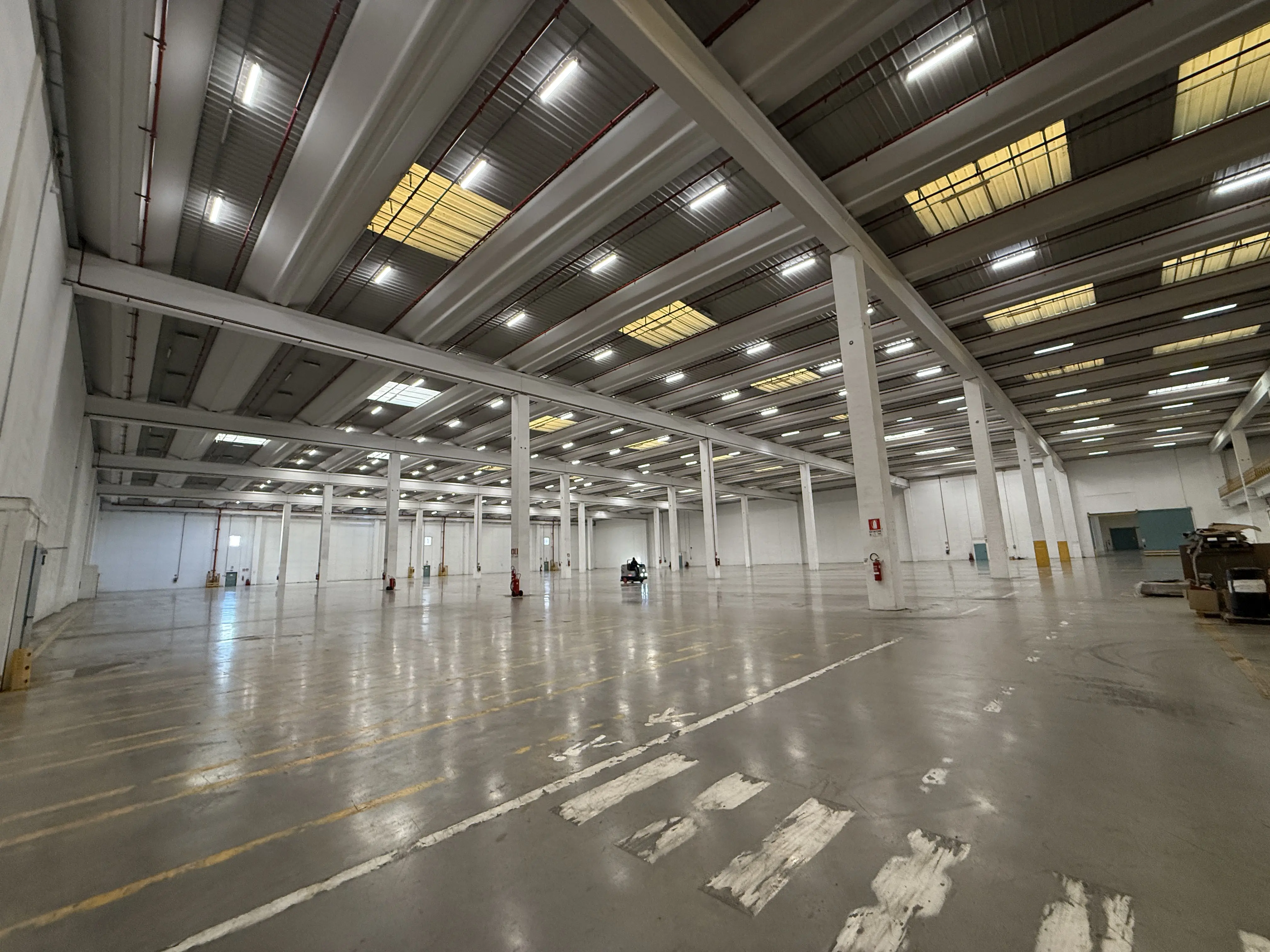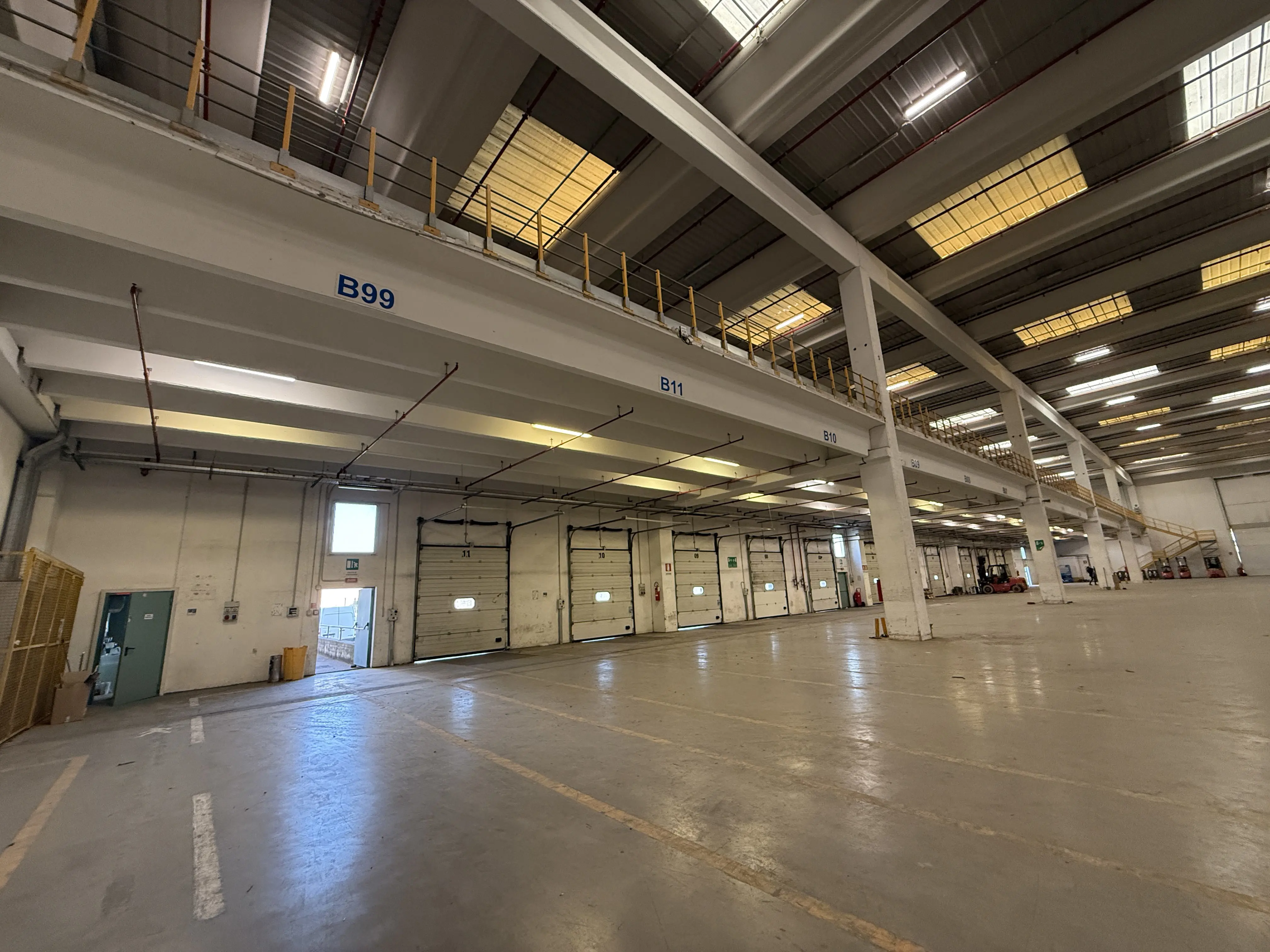 Capannone di 9.397mq di magazzino, altezza 12,20m oltre 415mq zona uffici su due livelli, 230mq ricovero muletti, 58mq locale tecnico e soppalco P1 di 1.300mq (portata 1.000kg/mq), illuminazione LED, impianto antincendio UNI45, idranti esterni UNI70 e Sprinkler NFPA/ESFR, 17 baie di carico e 1 portone a raso. LIBERO DA 01 MARZO 2026