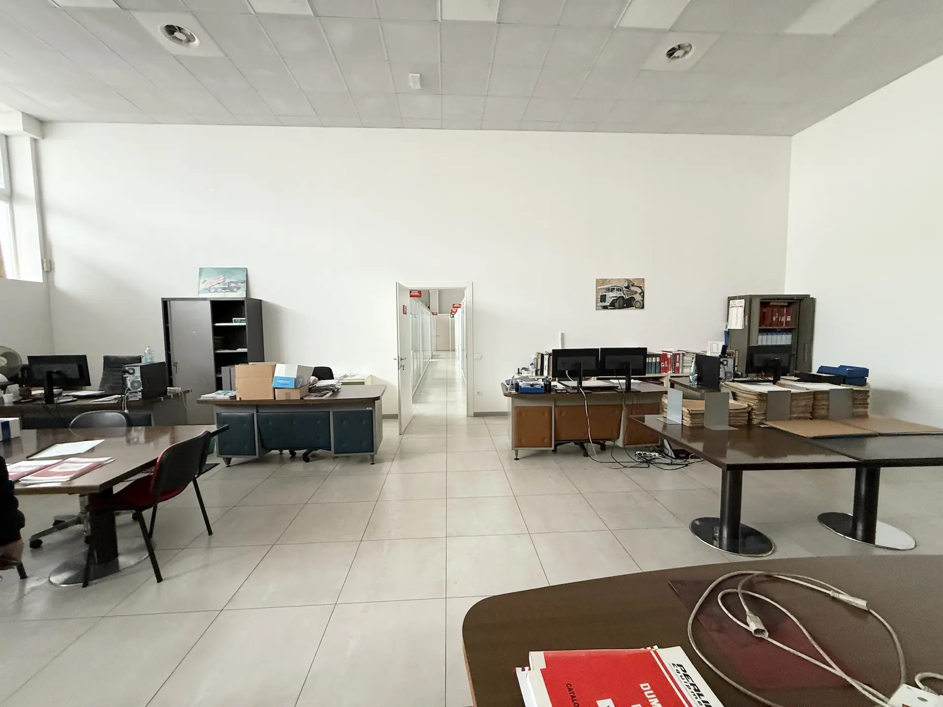 Edificato su lotto semi-indipendente, capannone di 680mq ad altezza 8,00m oltre magazzino di 580mq ad altezza 4,00m. Sulla parte frontale, prestigioso corpo uffici, spogliatoi, sala mensa con cucina e zona coffee-break di totali 1.620mq divisi su due livelli serviti da ascensore.