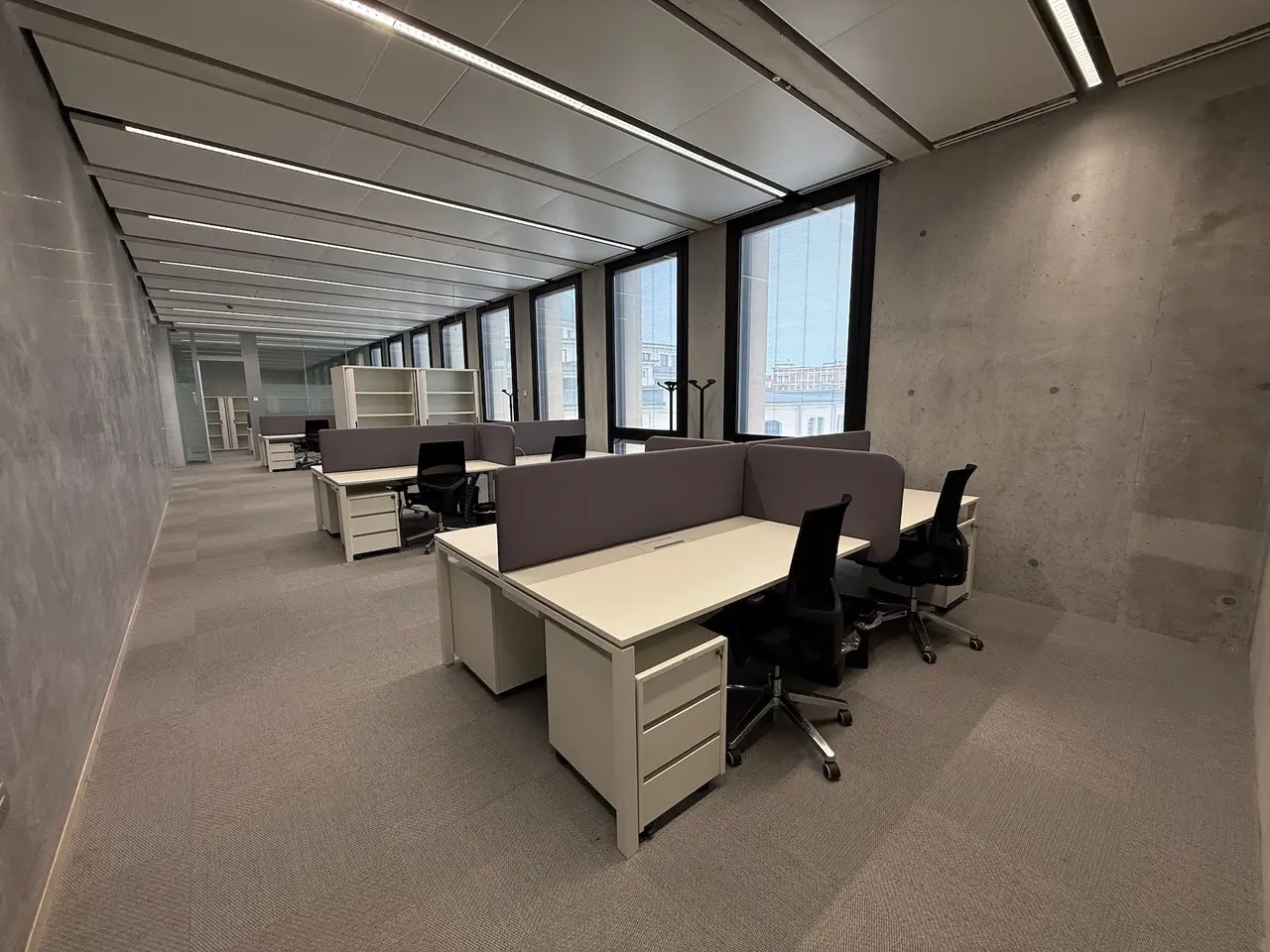Luminoso ufficio di recente riqualificazione di circa 1.440mq suddiviso in ingresso, ampio open space, tre stanze chiuse, sale riunioni e servizi. L’ufficio viene consegnato allestito, arredato e cablato cat.6 . Raffrescamento in pompa di calore e riscaldamento a pavimento. Situato al piano primo con 15 posti auto interrati inclusi e parcheggio comune.